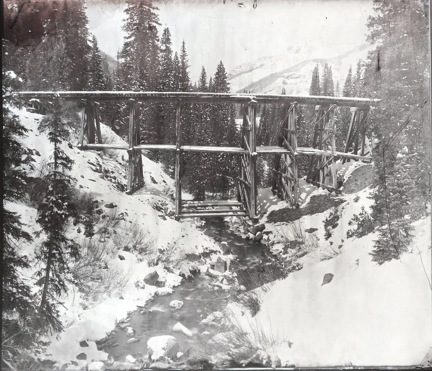 It is a highly physical process, made even more so when done on the side of a mountain, or following a skier into the backcountry for fresh tracks. For portraits in her studio, Ross requires a few hours of set up, mixing chemicals, setting lights, and cutting the glass or metal plates. But when she shoots on location in the mountains, it requires transporting the whole studio, and often hours of work just finding an access point.